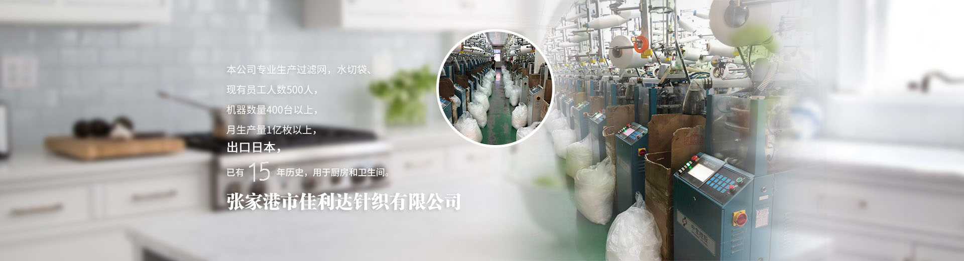張家港市佳利達針織有限公司地處田垛里二區,北依南通港,東傍上海港,與蘇錫常地區接壤,地理位置優(yōu)越,水陸交通便利?,F有員工人數500人,機器數量400臺以上,月生產量1億枚以上。公司專業生產水切網、滌綸網袋、垃圾過濾袋、無紡布網袋、水槽過濾袋、水槽水切袋、不銹鋼水槽網、廚余過濾、廚房衛(wèi)生清潔用品等,出口日本已有15年歷史,用于廚房和衛(wèi)生間,產品暢銷上海、廣州、深圳、南京、蘇州、無錫、常州等全國各地。